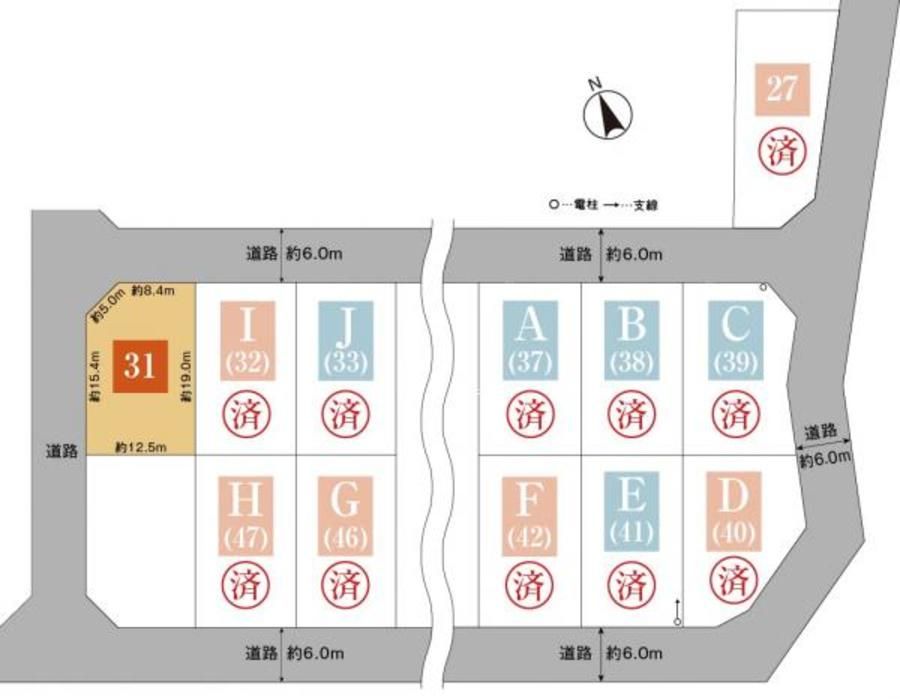 - ※分譲地は地図中心の赤いピン付近に所在します。(実際の物件所在地から多少ずれることがあります)