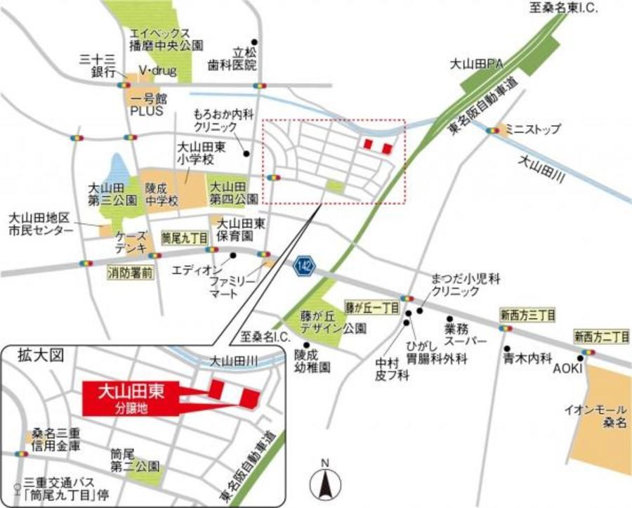 - ※周辺施設は、分譲地の所在地から半径3km以内の施設(大型施設は半径5km以内)のみを表示しています。