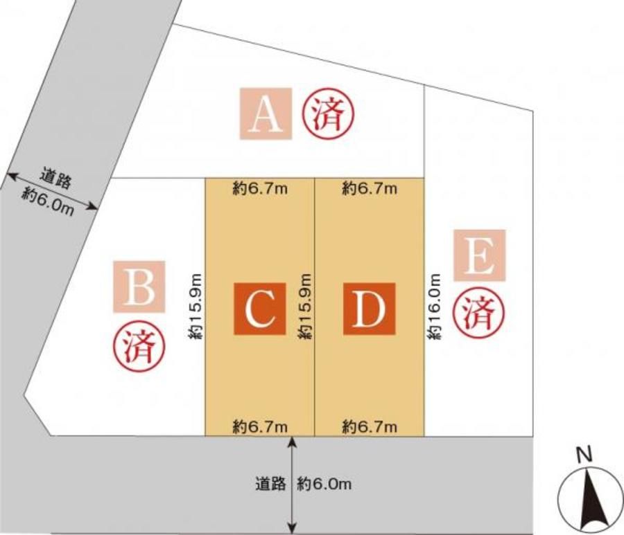 - ※分譲地は地図中心の赤いピン付近に所在します。(実際の物件所在地から多少ずれることがあります)