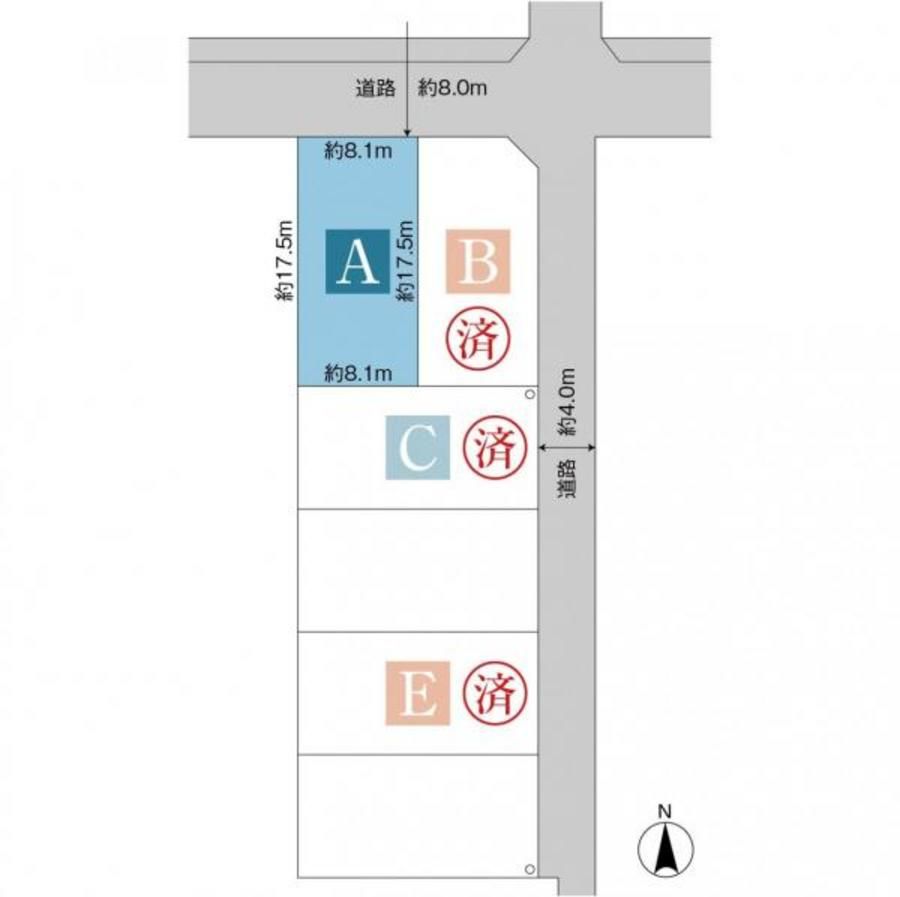 - ※分譲地は地図中心の赤いピン付近に所在します。(実際の物件所在地から多少ずれることがあります)
