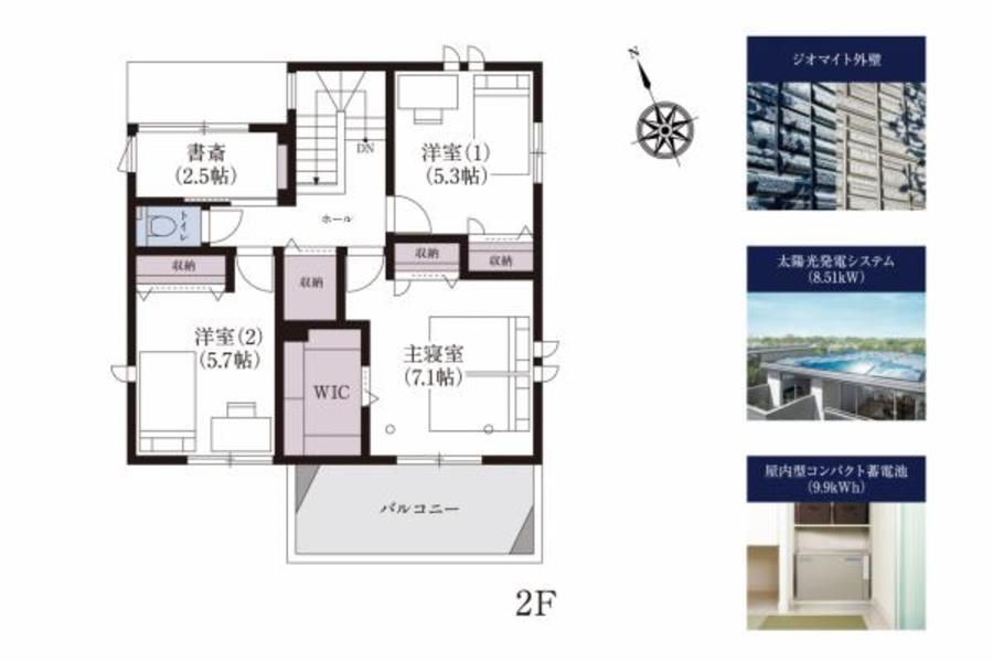 大容量の【太陽光発電システム】と【室内設置型コンパクト蓄電池】を搭載!