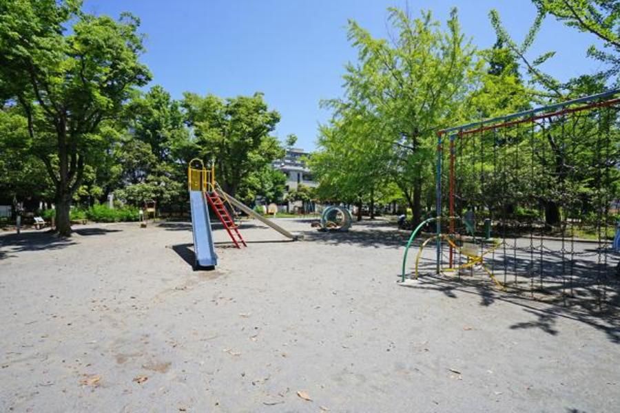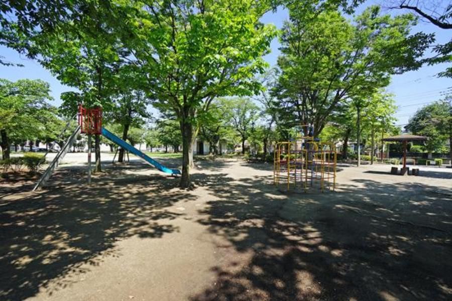 物件から4分歩くと見えてくる「新松戸南公園」は、緑豊かな遊具のある公園。