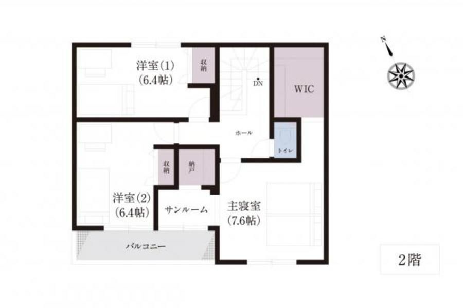 4LDKの間取りにはサンルームや納戸、大容量のウォークインクローゼットも備えた贅沢な設計。