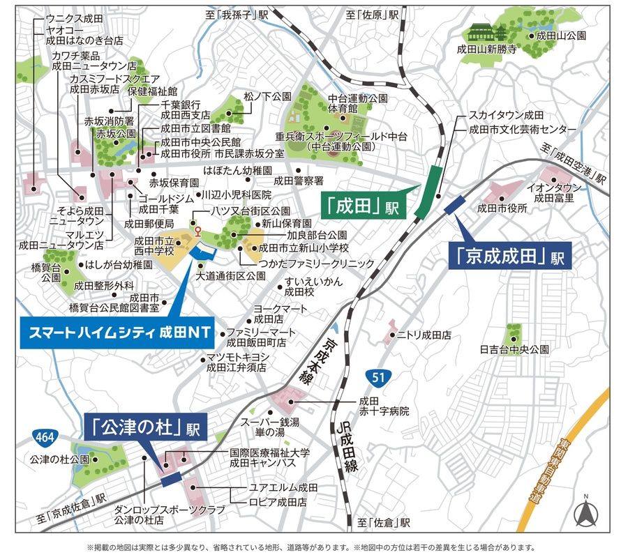 - JR成田線「成田」駅 徒歩22分~25分