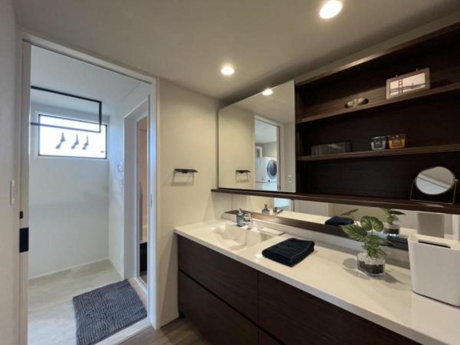 ■洗面所にはファミリークローゼット、キッチンにはパントリーを備えるなど、