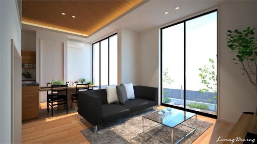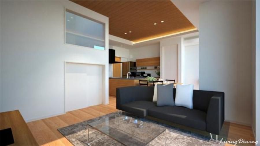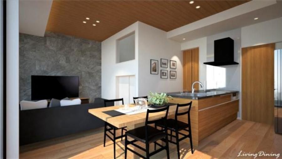 ■天井高約3mの開放的なリビングダイニングがくつろぎの住空間を演出。