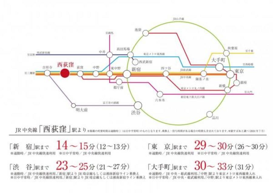 西荻窪は、JR中央線・総武線が利用でき、新宿や東京、大手町といった都心主要エリアへのアクセスが抜群です。