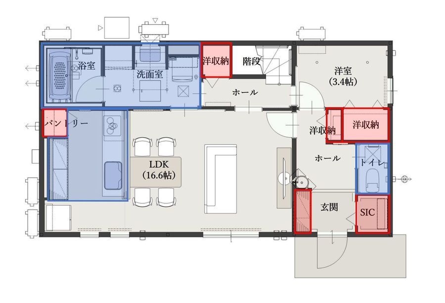 回遊動線と階段下収納で、