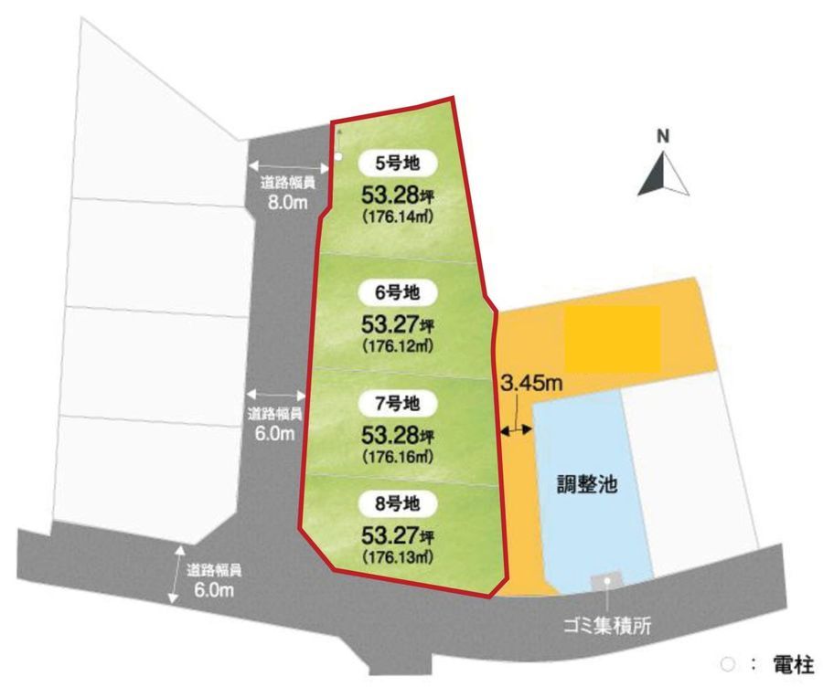 - ※分譲地は地図中心の赤いピン付近に所在します。(実際の物件所在地から多少ずれることがあります)