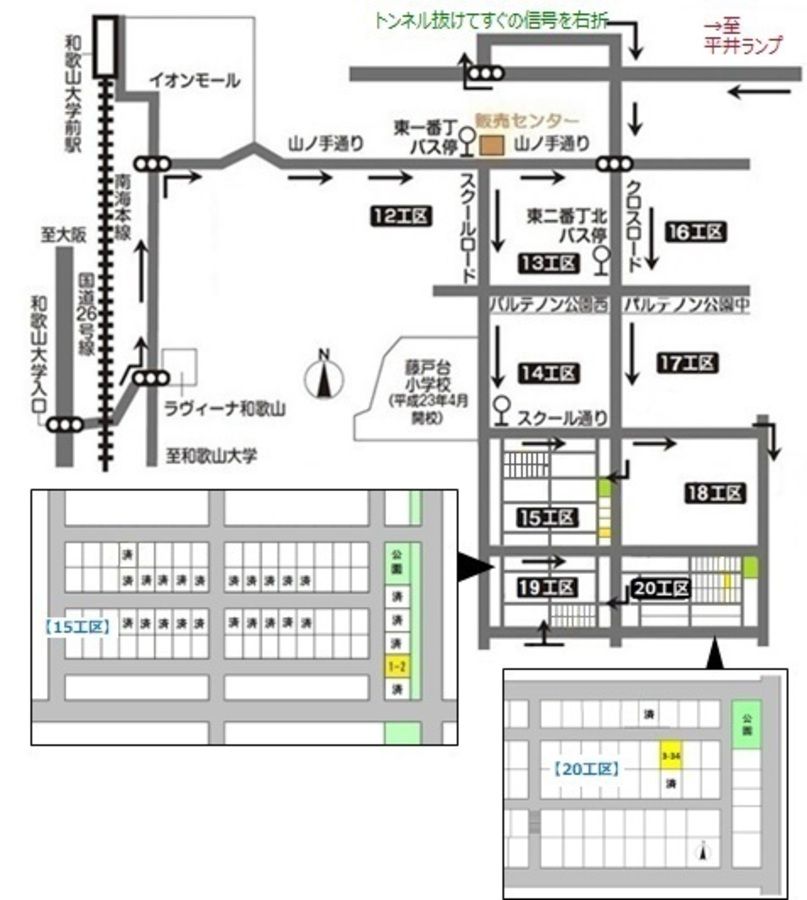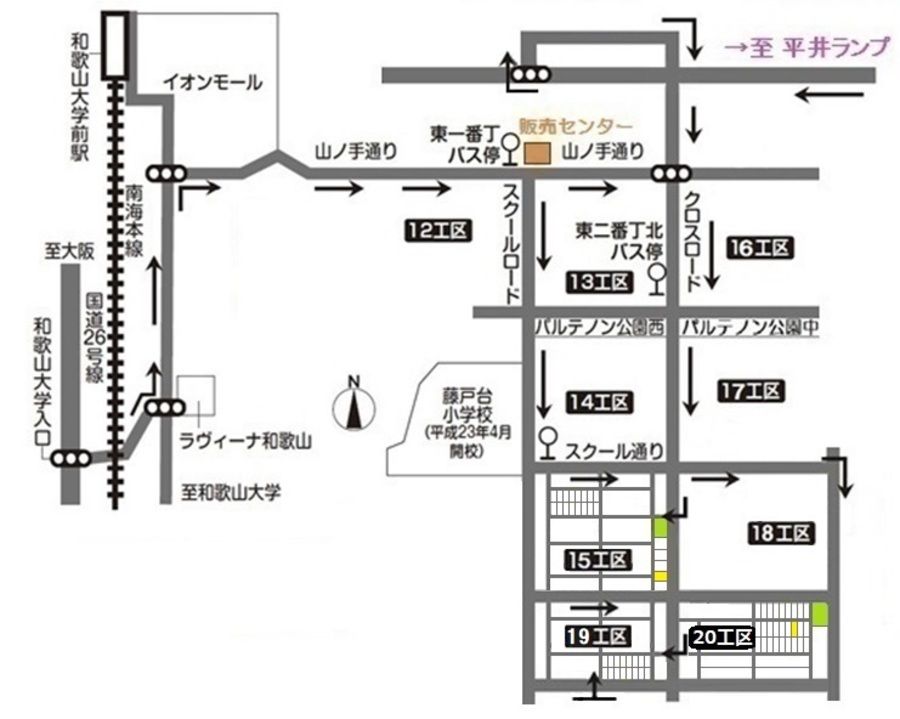 - 南海電鉄南海本線和歌山大学前駅よりバス3分「ふじと台小学校東口」バス停下車・徒歩4分〜5分