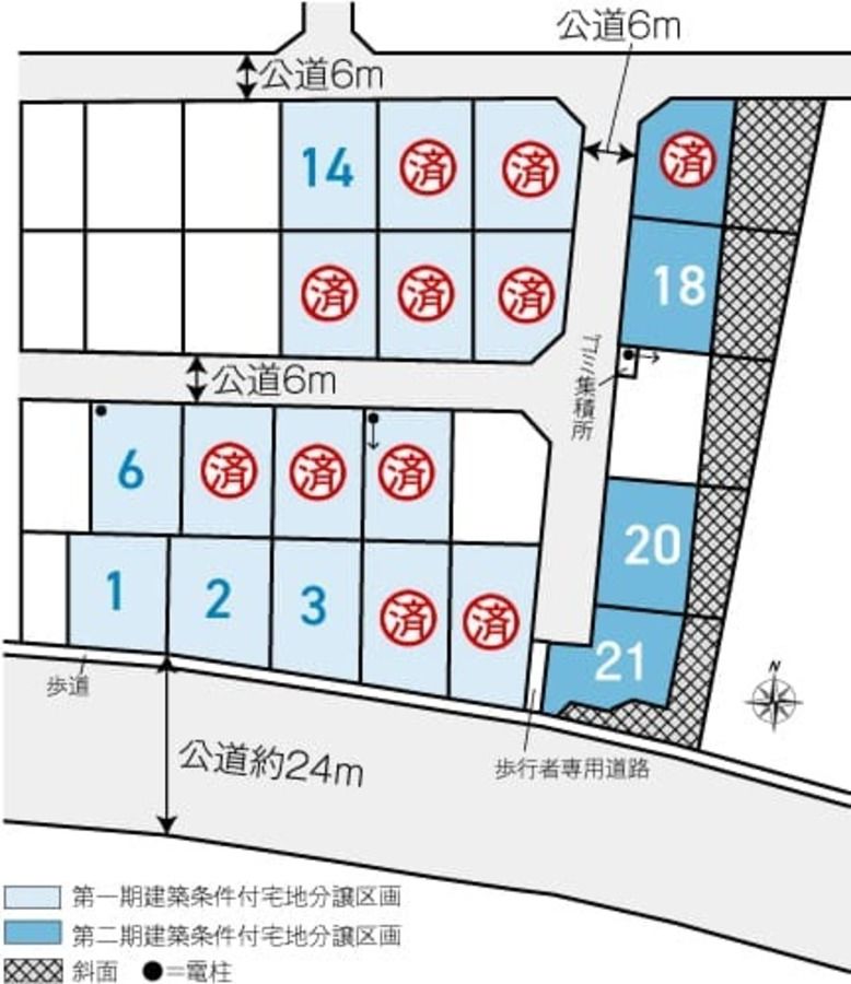 ●建築許可理由:開発許可等による分譲地●総区画数42区画の内、当社の販売区画数は21区画です。●17号地は傾斜地146.83㎡含みます。●18号地は傾斜地129.58㎡を含みます。●20号地は傾斜地99.59㎡を含みます。●21号地は傾斜地124.87㎡を含みます。