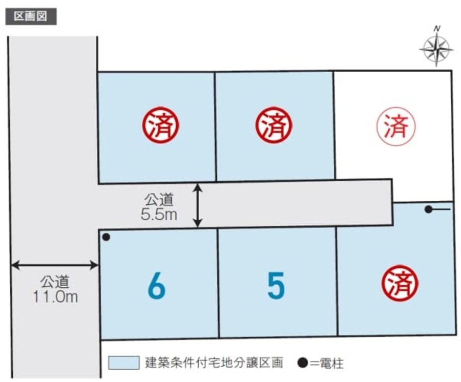 ●道路幅員/団地内道路5.5m、西側道路11.0m(アスファルト舗装)