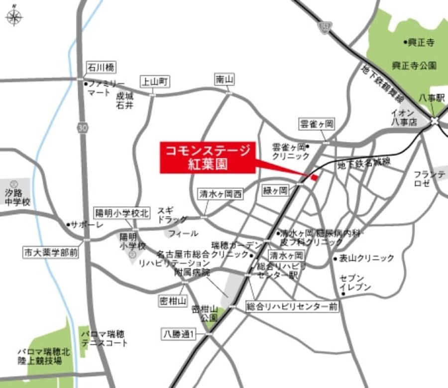 - 名古屋市営地下鉄名城線「総合リハビリセンター」駅まで徒歩9分(最長)