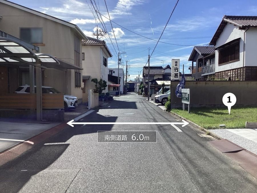 ■前面道路は約6.0mとゆとりがあり、車のすれ違いや入出庫を気持ちに余裕を持って行うことができます。