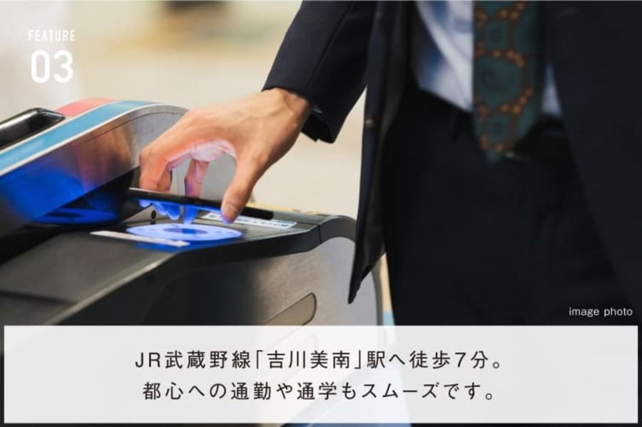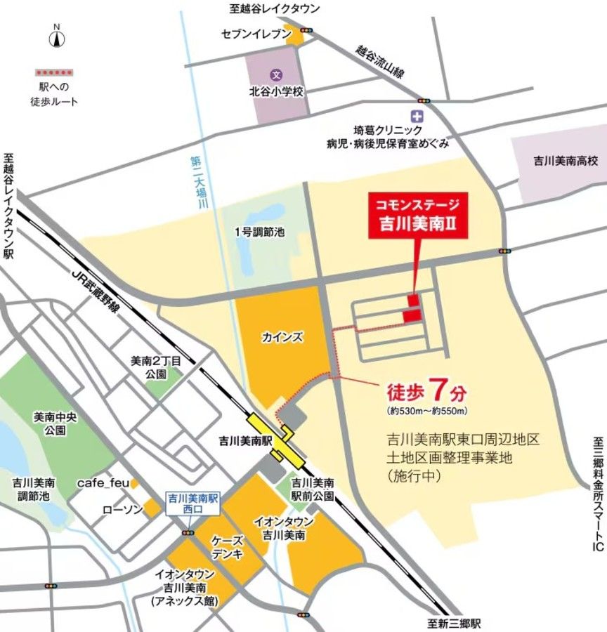 JR武蔵野線「吉川美南」駅へ徒歩7分(約540m〜約550m)。