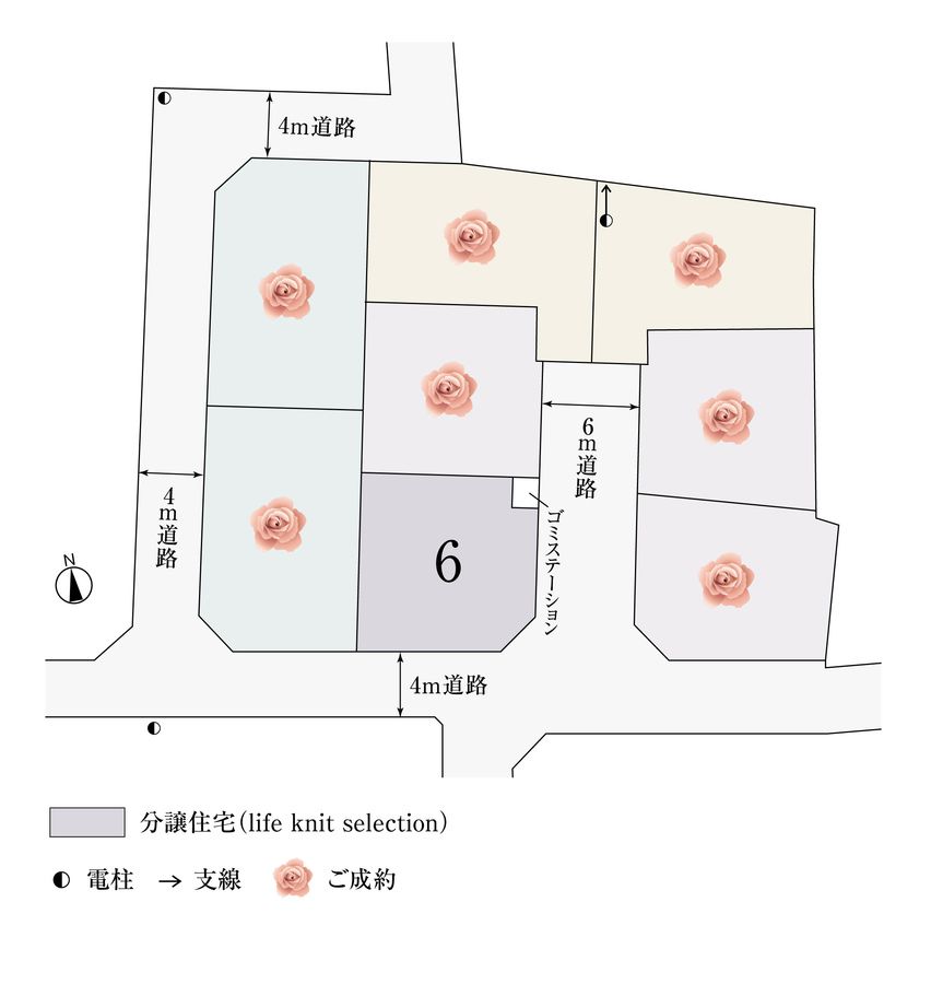 - 110.24㎡●私道負担面積 私道負担あり。私道(110.84平方メートル)は1号地~6号地にて各々1/6ずつ共有して頂きます。