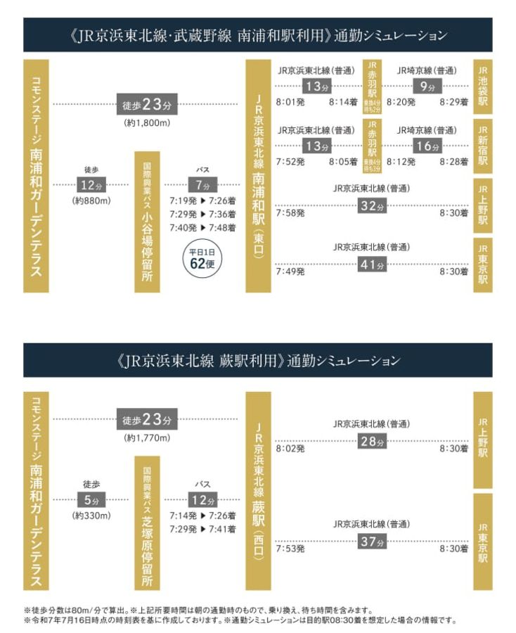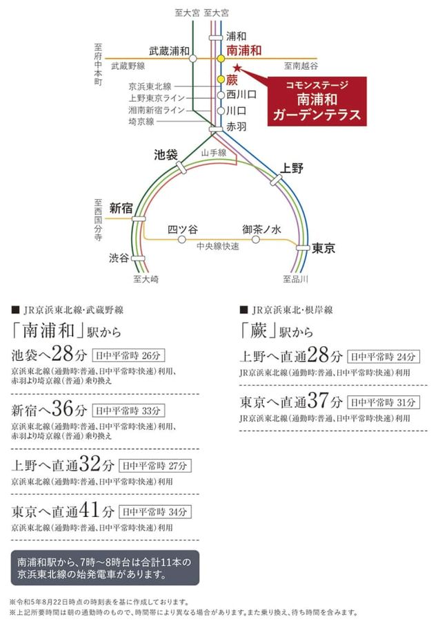 - JR京浜東北・根岸線、JR武蔵野線「南浦和」駅まで徒歩23分(最長)