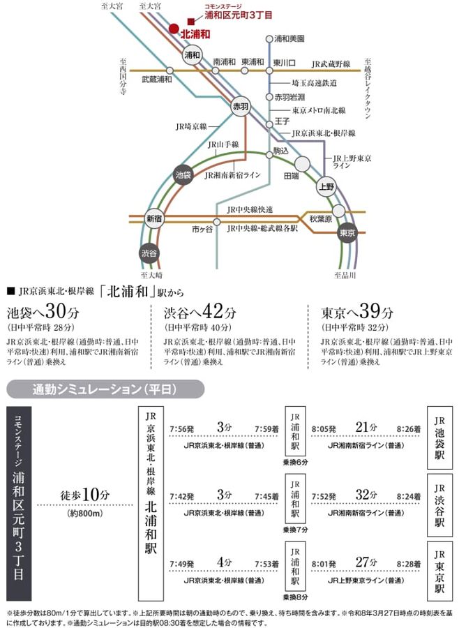 - JR京浜東北・根岸線「北浦和」駅まで徒歩10分(最長)