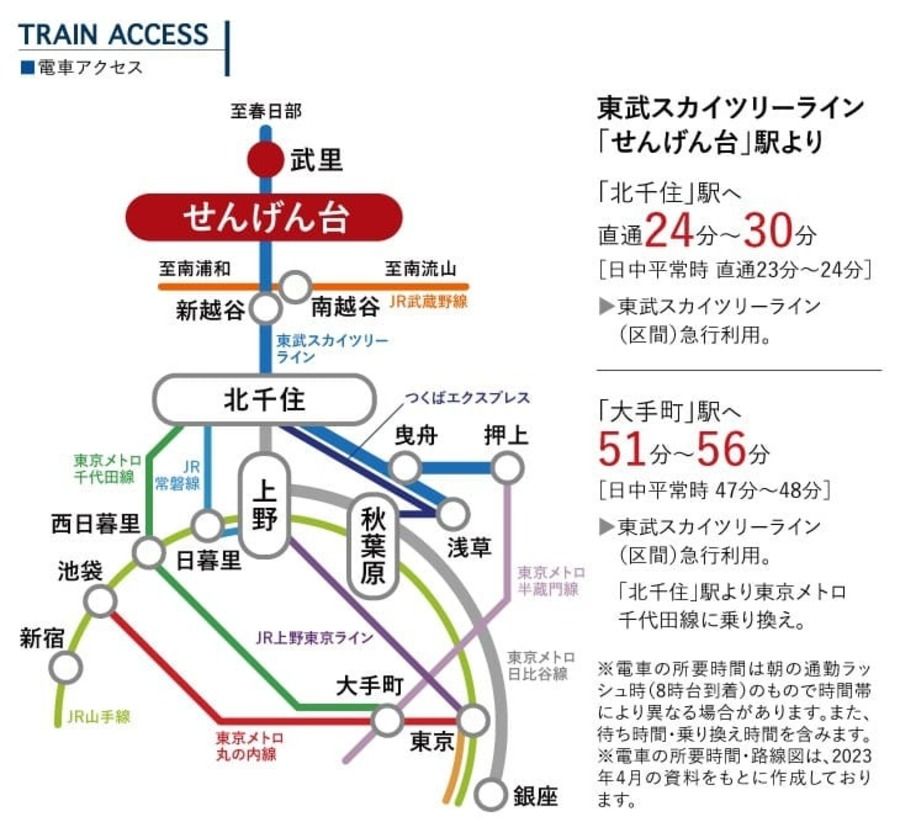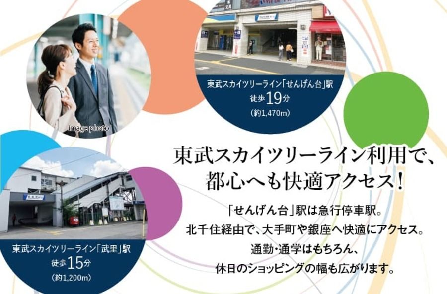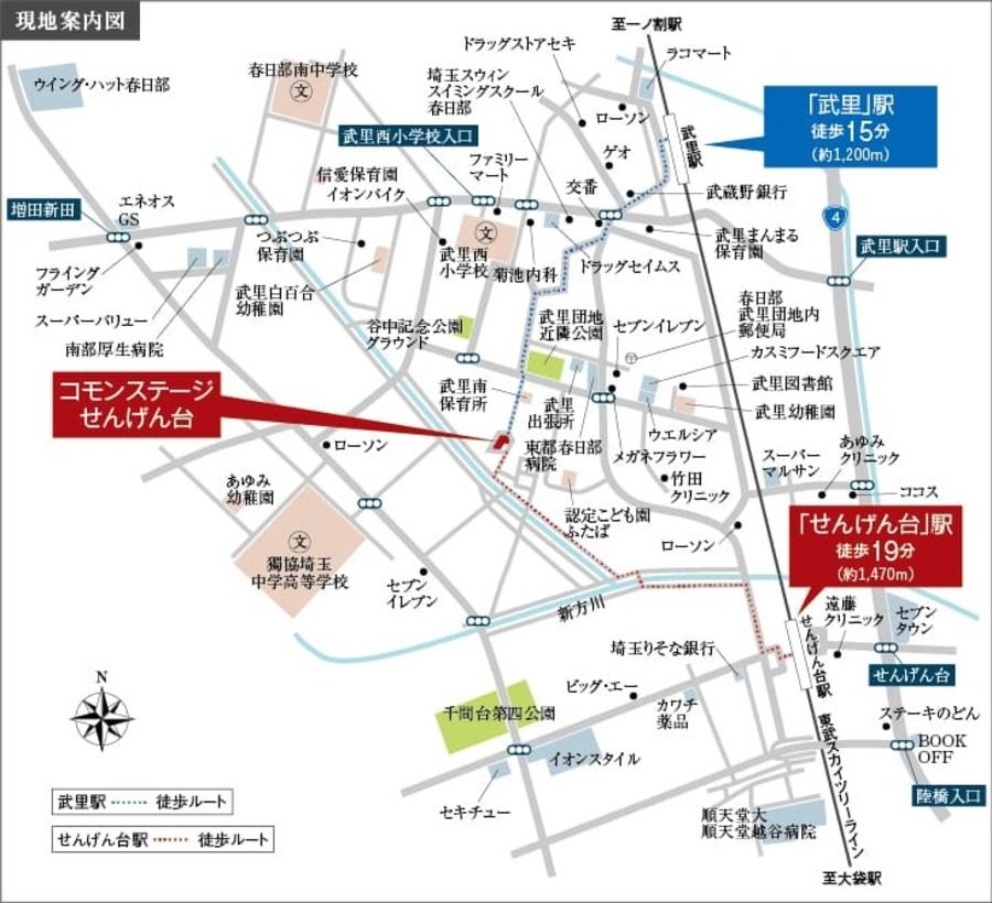 東武スカイツリーライン「せんげん台」「武里」2駅徒歩圏。移動の選択肢が広がる立地。