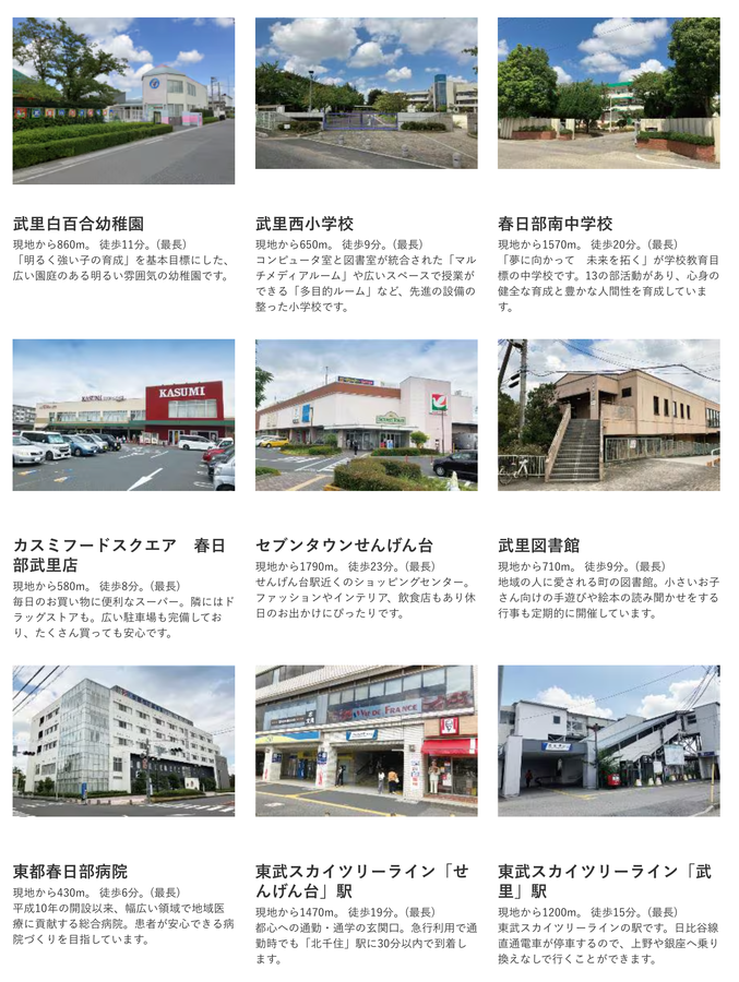 - 東武スカイツリーライン「せんげん台」駅まで徒歩19分(最長)