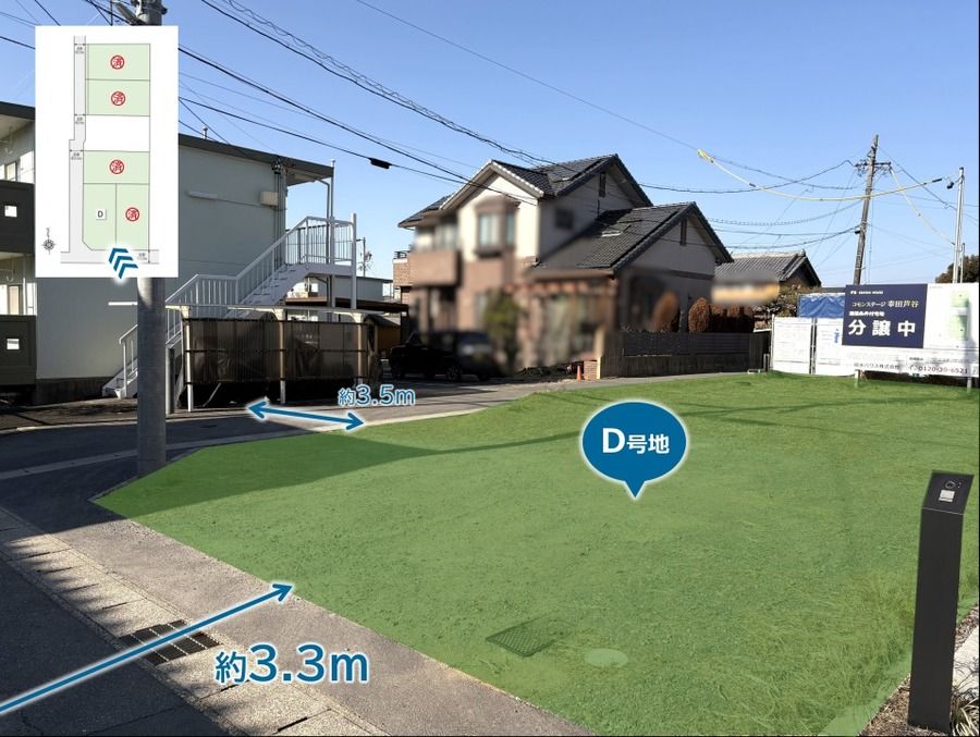 ●道路幅員 3.3m~3.5m アスファルト舗装 南側道路:約3.3m、西側道路:約3.5m(アスファルト舗装)※道路幅員4m未満ですが、当分譲地側の道路後退は完了しております。