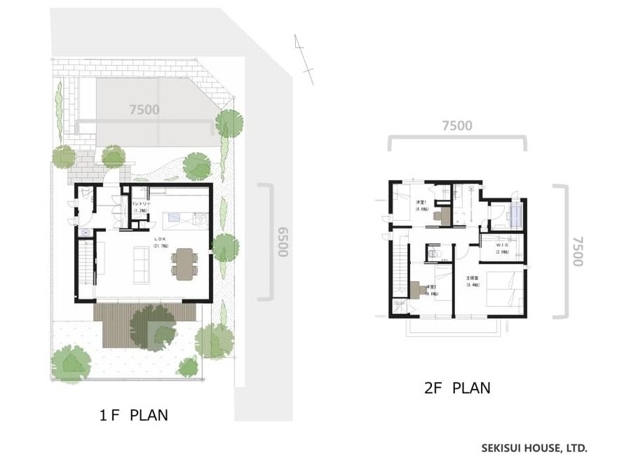 ■延床面積 109.02㎡(32.97坪) 1F:49.59㎡ 2F:59.43㎡