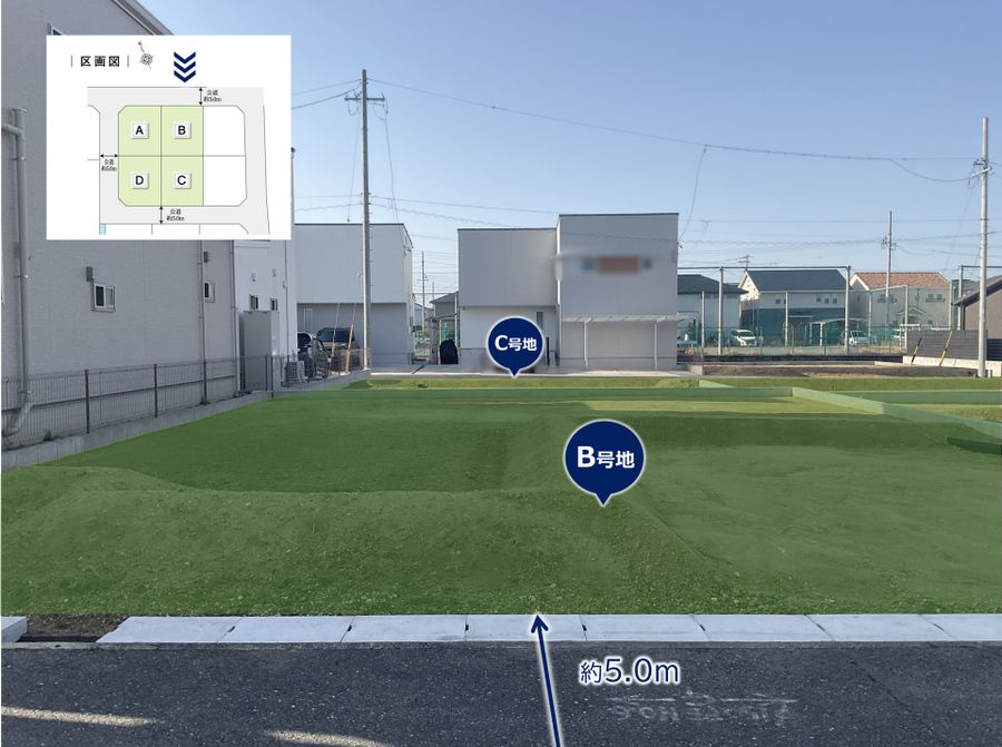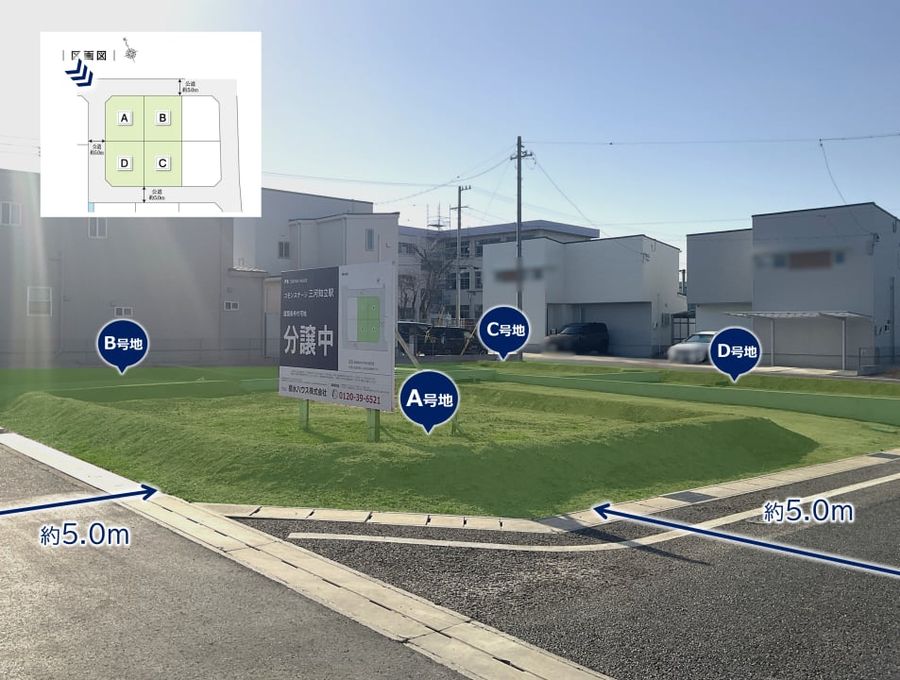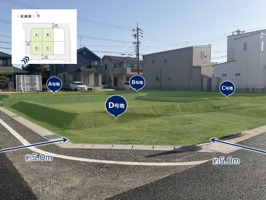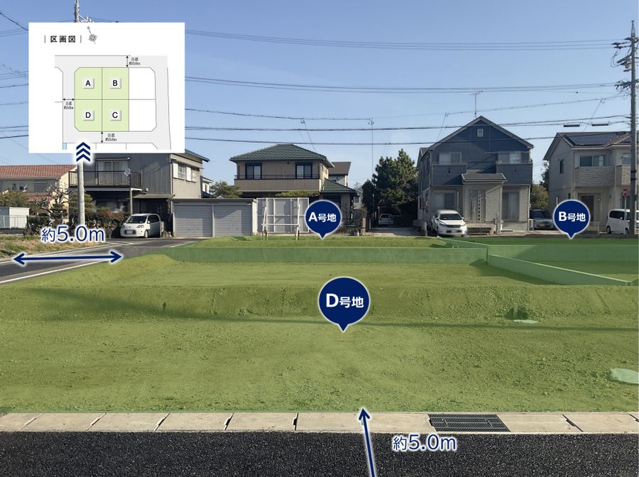 道路幅員:5m 道路幅員/東側約5.0m 南側約5.0m 北側約5.0m