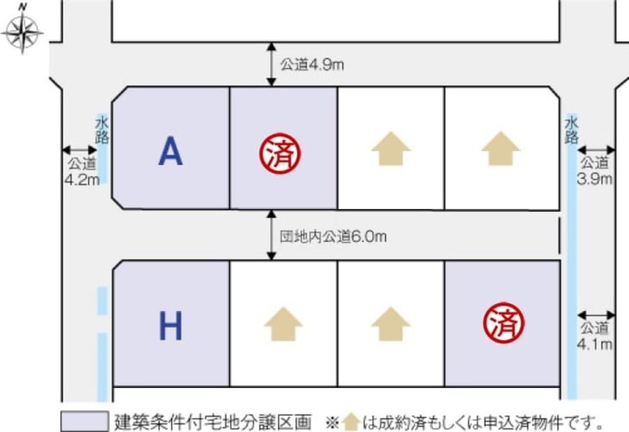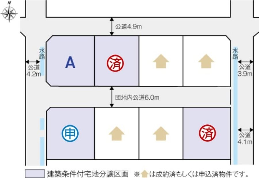 道路幅員:4.9m~6m アスファルト舗装 公道北側約4.9m、分譲地内開発道路6m