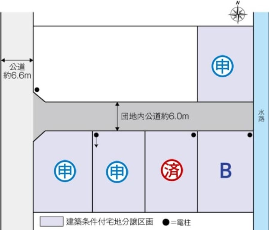 ●道路幅員:公道西側約6.60m、団地内道路約6.0m