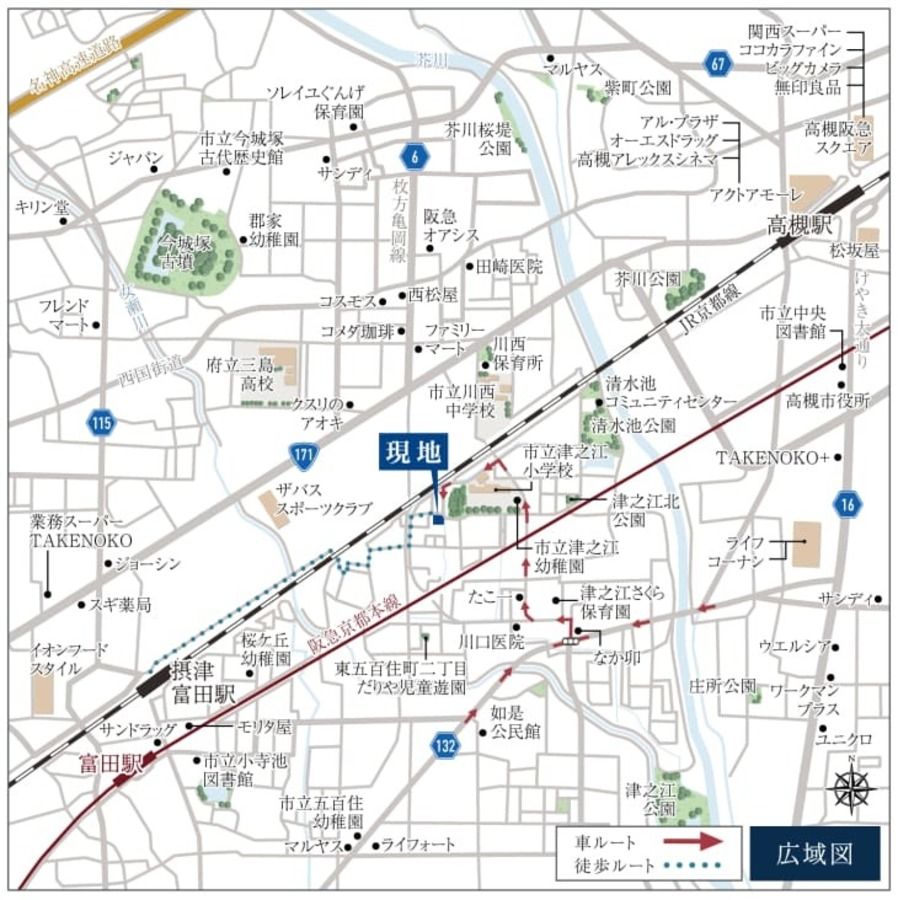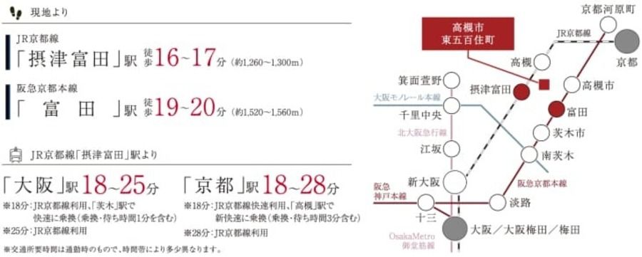 - JR京都線「摂津富田」駅まで徒歩16分~17分