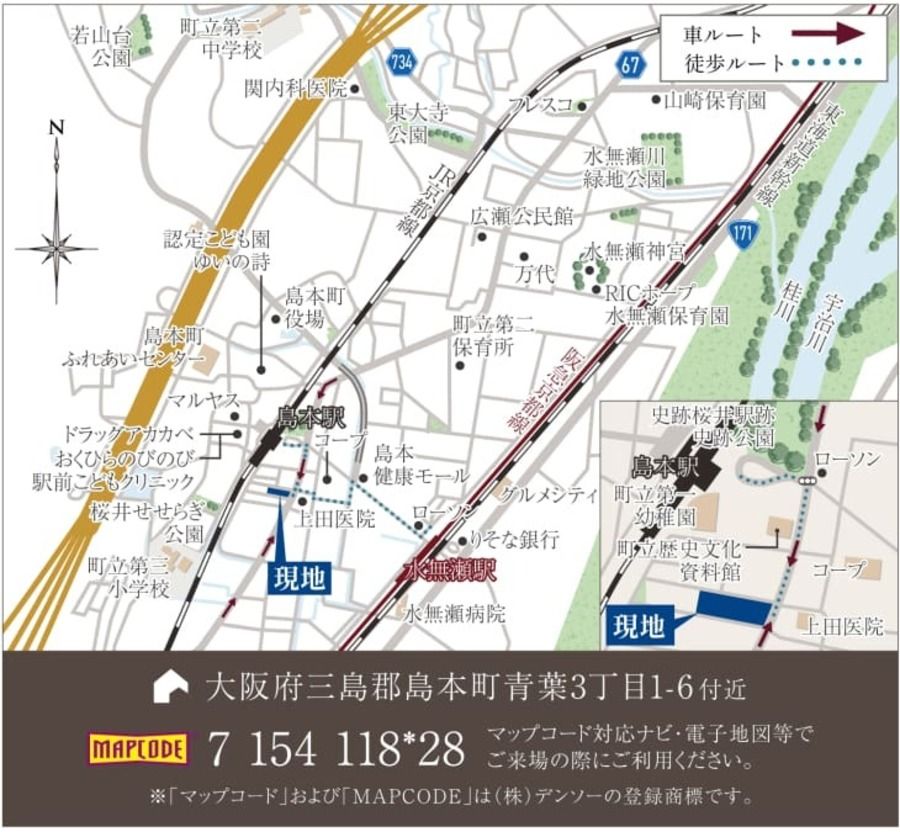 - JR京都線「島本」駅まで徒歩3分~4分