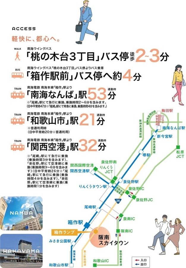 難波へも和歌山市へも関西国際空港へもスムーズにアクセス。