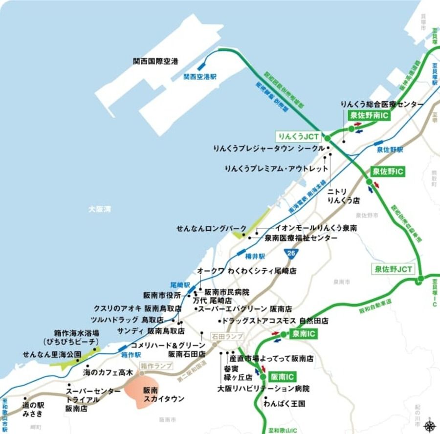 第二阪和国道の箱作ランプも近く、シーサイドエリアをはじめ、各方面へのカーアクセスも良好です。