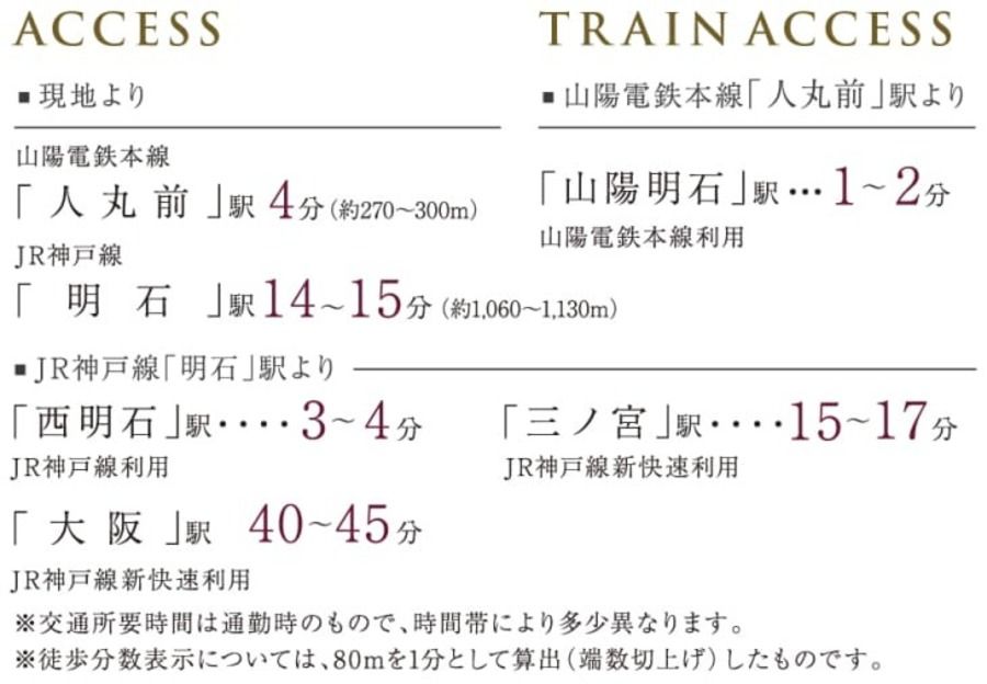 山陽電鉄本線「人丸前」駅から「山陽明石」駅へ1~2分。