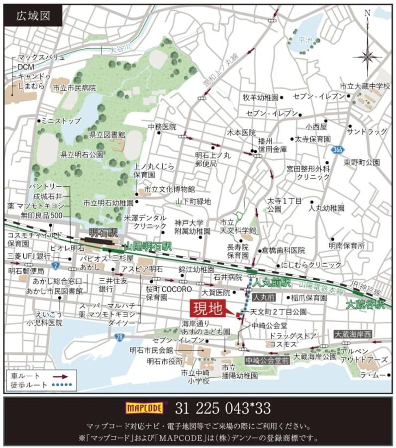 子午線が通る、明石市の司法の拠点エリアに立地する敷地。