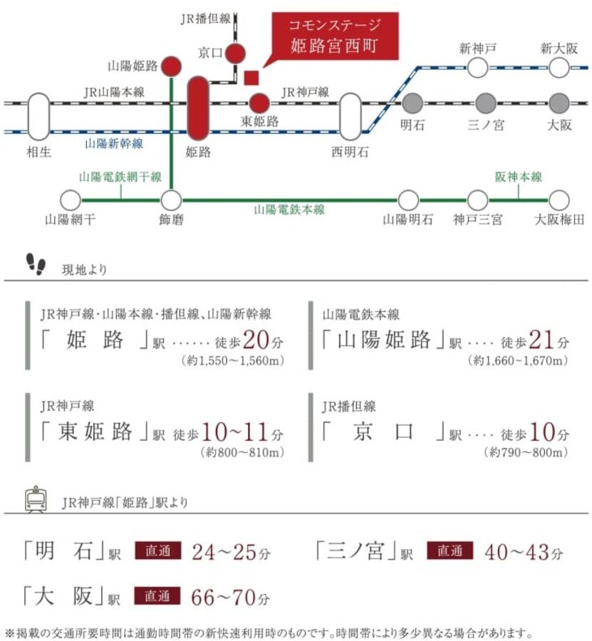 JR神戸線「姫路」駅まで徒歩20分(最長)