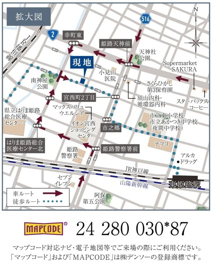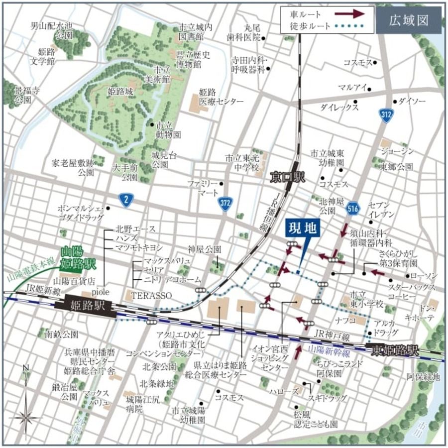 - JR神戸線「東姫路」駅まで徒歩10分~11分
