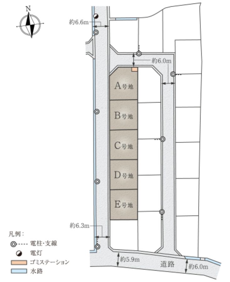 道路幅員:6m~6.3m アスファルト舗装 道路/公道、幅員 北側6.0m、西側6.3m(アスファルト舗装)その他の用途・形態制限