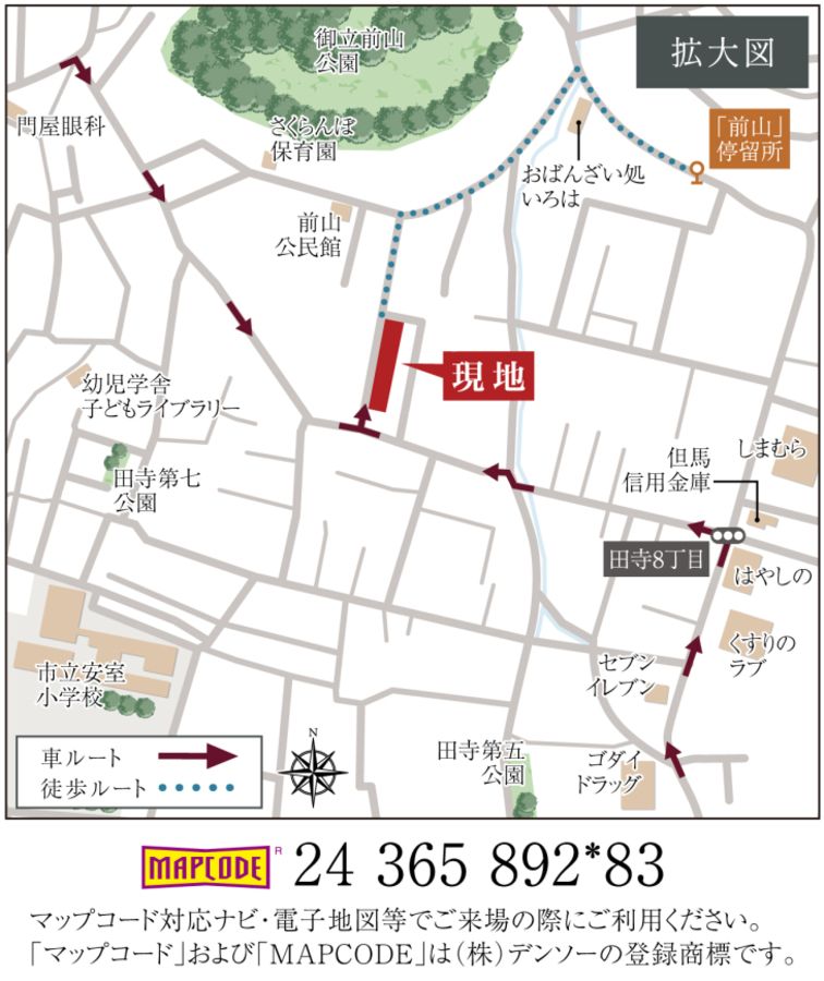 - 最寄バス停「前山」停留所まで徒歩5分~6分、「神姫バス」に乗車、JR神戸線「姫路」駅