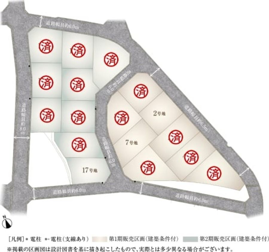 ●水道分担金:192,500円(税込、口径20mmの場合)、設計検査手数料:3,300円(非課税)、工事検査手数料:6,700円(非課税)●まちなみガイドライン:本分譲地は街の景観育成と快適性を高めるために独自のガイドラインを定めています。 ■第1期建築条件付宅地概要●今回販売区画数/2区画(2、7号地)●土地面積/251.96㎡(1区画)~256.89㎡(1区画)●土地価格/8,300万円(1区画)~8,400万円(1区画) ■第2期建築条件付宅地概要●今回販売区画数/1区画(17号地)●土地面積/258.69㎡(1区画)●土地価格/7,980万円(1区画)建築条件
