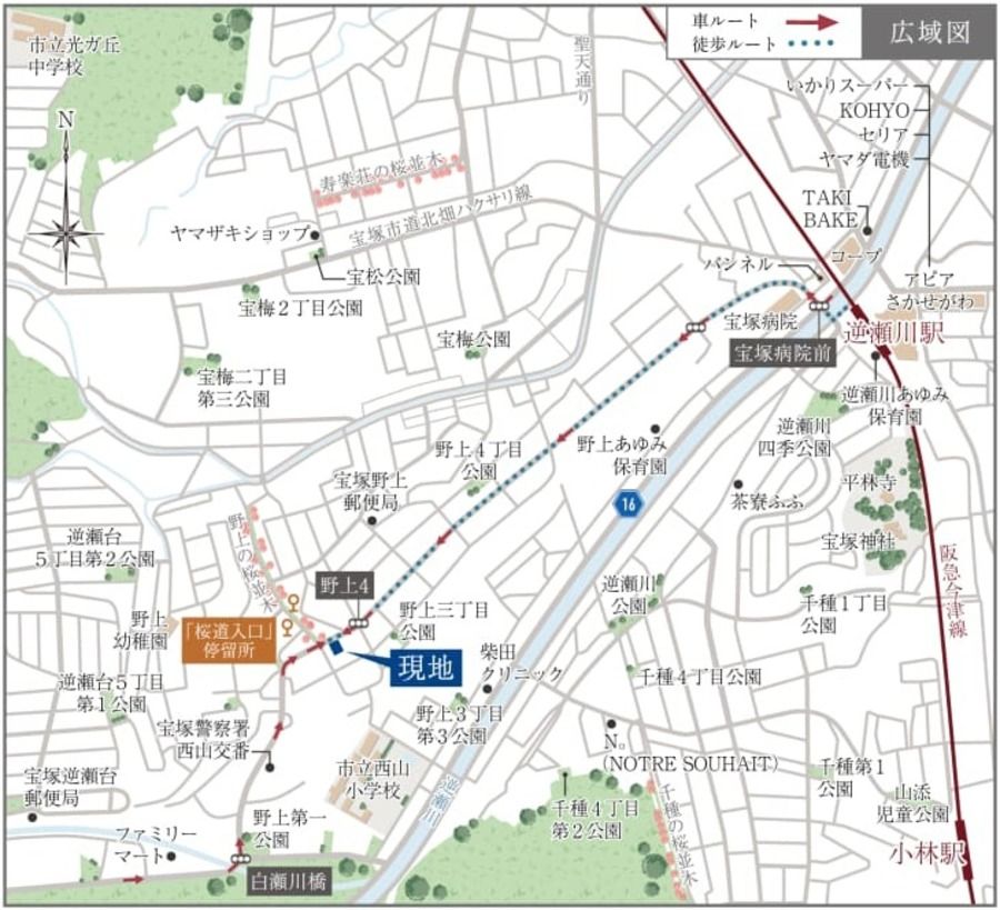 - 阪急今津線「逆瀬川」駅まで徒歩15分(最長)