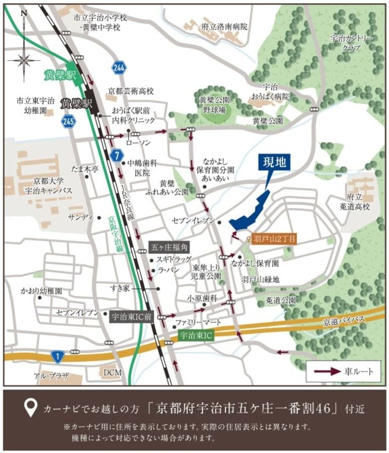 • JR奈良線「黄檗(JR)」駅まで徒歩15分(最長)