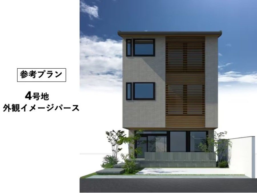 ●道路幅員/北側:約6.00m、東側:約6.00~6.02m(第42条1項1号) ●負担金等/水道分担金:99,000円φ20mm(税込)、検査手数料:14,200円(非課税) ●開発許可番号/第5053号(令和5年11月1日)、開発検査済証:第5097号(令和6年11月12日) ●その他事項/①良好なまちなみの形成を図るため、「まちなみガイドライン」を作成しています。②埋蔵文化財包蔵(遺跡)一般跡に指定されています。周知の埋蔵文化財包蔵地の範囲内で土木工事等を行う際は、事前に文化財保護法に基づく届出が必要となります。 ●取引態様/土地売主【4号地 参考プラン/外観パースについて】