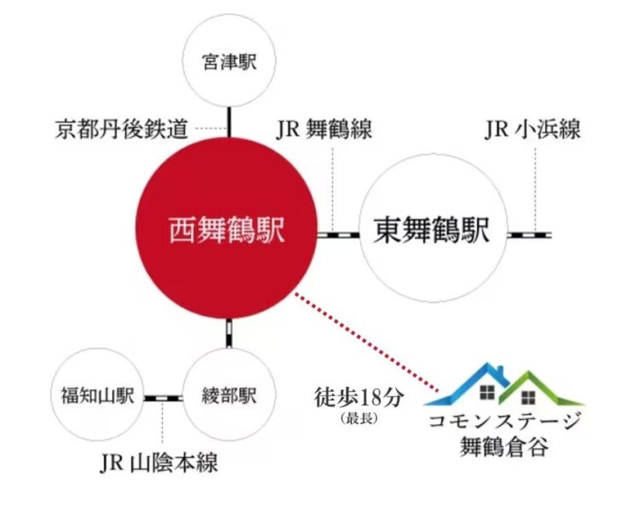 - JR舞鶴線「西舞鶴」駅まで徒歩18分(最長)
