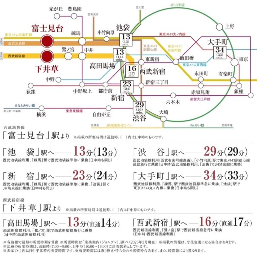- 西武池袋線「富士見台」駅まで徒歩11分~12分