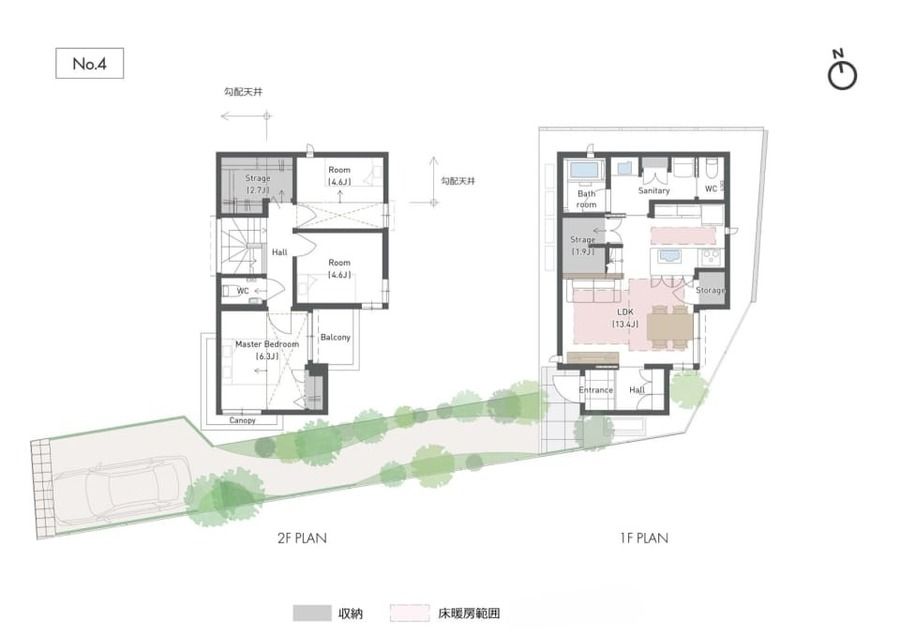 ●建築確認番号:No.4:第 東日本24-02452号 ●まちなみガイドライン:本分譲地では、快適で良好な住環境を皆様に提供するために、外構等について基本的なガイドラインを設けております。 ●掲載の徒歩分数は、1分あたり80mで計算し、1分未満は切り上げております。 ●坪表示は、1平方メートル=0.3025坪で換算し、小数点第3位以下は切り捨てております。●内観イメージパース・内観写真・間取り図に掲載の車輛・家具・調度品は、販売価格に含まれておりません。●記載の土地面積の中で、№4は42.24㎡(約38.35%)の路地状部分を含みます。