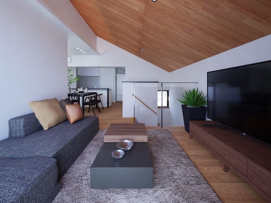木の質感豊かな勾配天井が柔らかな空間を演出します。