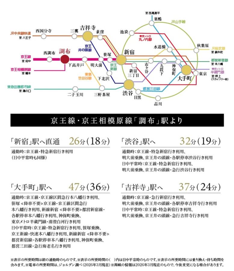 京王線・京王相模原線「調布」駅へ徒歩18~19分。