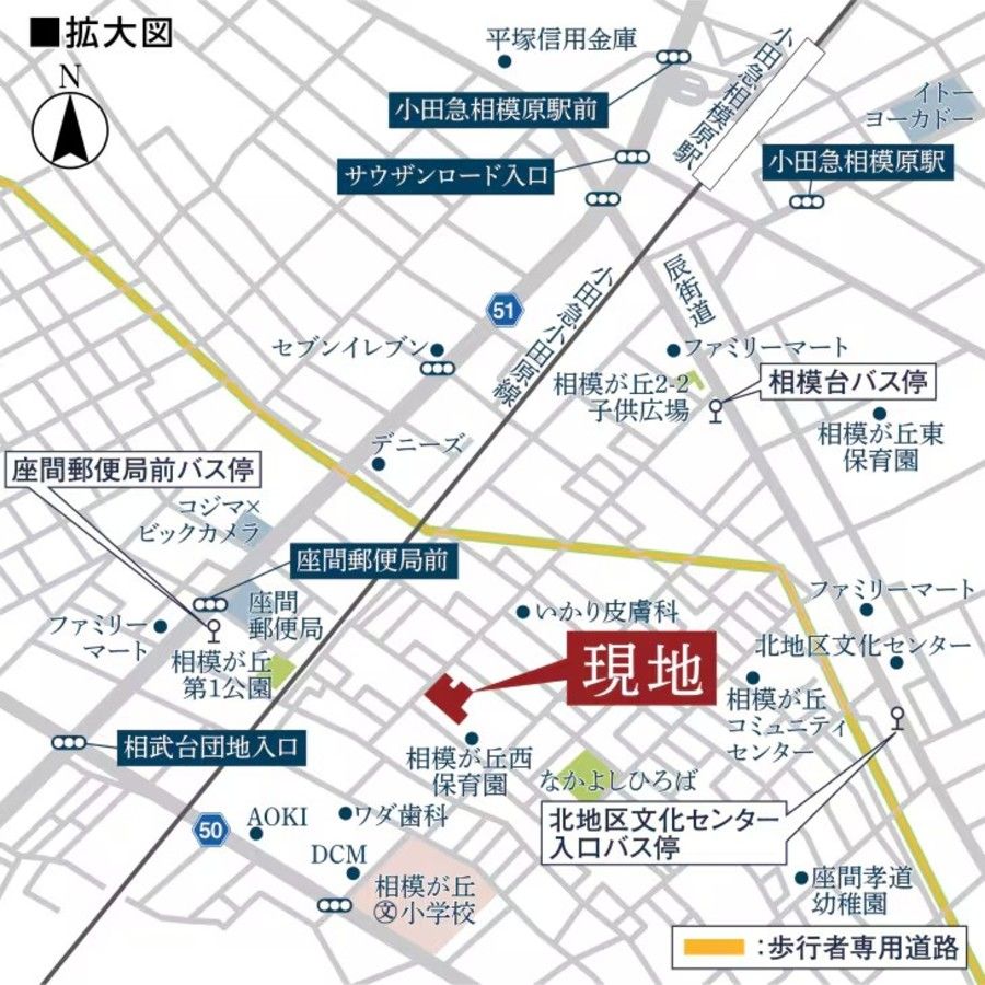 ■小田急小田原線「小田急相模原」駅まで徒歩11分(約850m)
