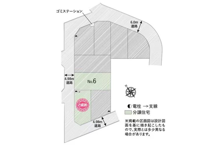 道路幅員:4.9m 西側4.98m、南側4.98m、(アスファルト舗装)